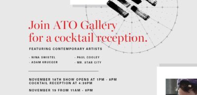 ATO Gallery is hosting its first New York pop-up titled Conduit at One Art Space (23 Warren Street) on Sunday, November 18 from 1-8pm and Monday, November 19, 11-8pm. The pop-up will showcase the works of four emerging artists, Nina Swistel, Paul Cooley, Adam Krueger and Mr. Star City, whose contemporary works incorporate a variety of mediums.