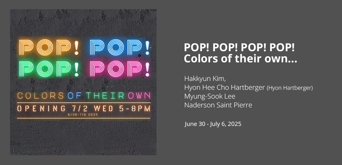 Curated by Grace Yeonsook Ji, this exhibition invites viewers to witness how color speaks—individually, culturally, universally. Here, “pop” is not just a style, but a heartbeat: a burst of meaning, a flash of truth, and a celebration of each artist’s unique rhythm in the collective chorus of contemporary expression.