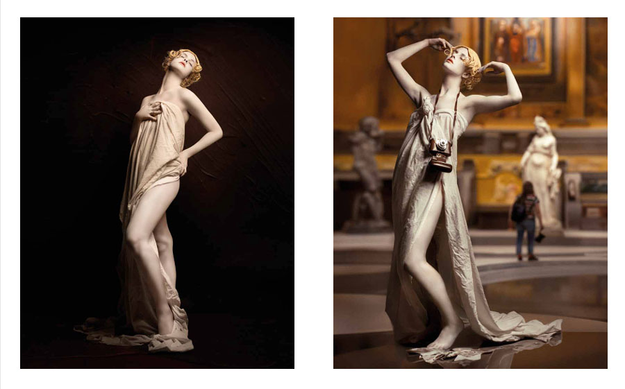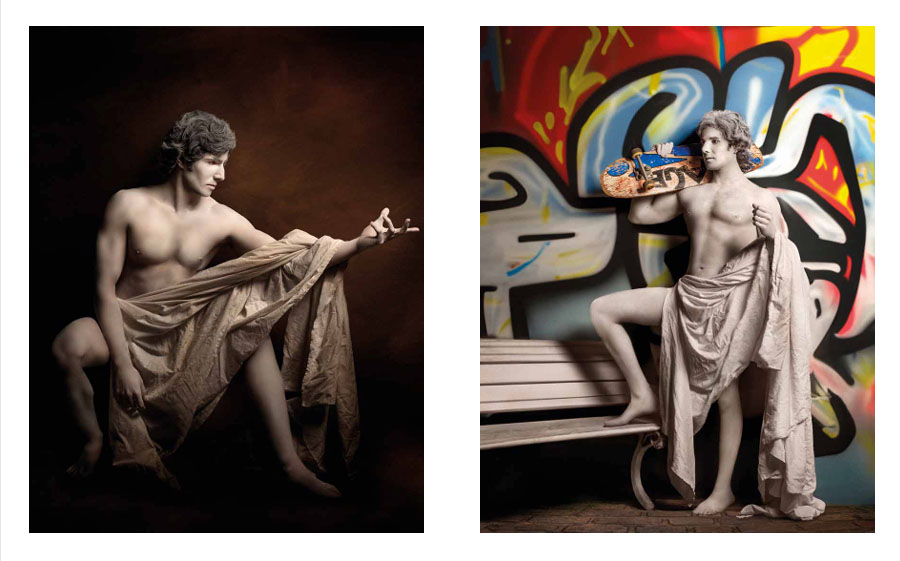 “Marco Vacchi makes photographs that make you feel uncomfortable, titillated, enticed, and somehow fetishistic. His subjects are almost naked people. Women mainly, but also men. They are white and Black. You want to reject his art as only satisfying his own voyeuristic needs. Yet, each image resists this, makes itself more than the sum of its parts. We see a blond. But her hair is super-blond, styled in an anachronistic way. Maybe she’s like an 18th century putti, a cupid with naughty, knowing, hyperactive intentions. She is placed in a classical setting. There’s a pillar. Everything says nostalgia. But then that falls away and you get a clever, wry sense of humor, with a very particular form of personal beauty. We are suspended in an uncanny Rococco via deep manneristic tendencies, shot through with a very male drive to look, see, love, pour over, comb every detail. Vacchi is a throwback. He is a studio photographer creating not fashion photos but his own private world. Beautiful bodies abound. He loves looking. He is dying for you to look too. We do. We join him and feel opened and uplifted.”