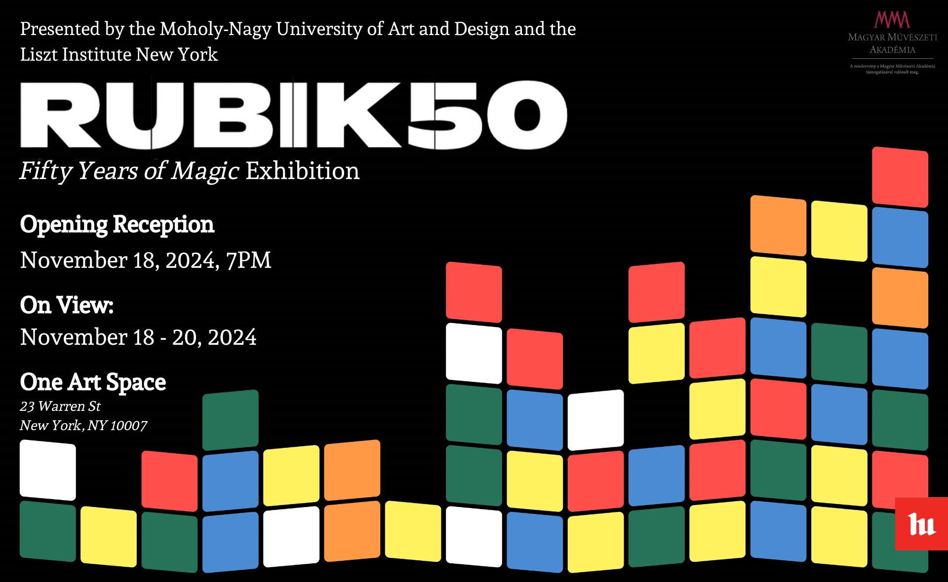 The Rubik 50 – Fifty Years of Magic international travelling exhibition was created to mark Ernő Rubik’s 80th birthday and the 50th anniversary of the invention of the Cube and its New York showcase is organized by the Moholy-Nagy University of Art and Design (MOME), Budapest, Hungary and the Liszt Institute New York.