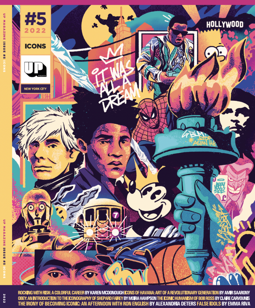 Power, influence, and Icon status are as elusive as they are alluring. In UP’s fifth print issue since our launch in 2019, we tackle what it means to be an icon and what the icons we aspire to and use in our art say about us. The world of graffiti and street art is full of bombastic legends and iconic tags, and UP5 features exclusive interviews with artists such as CRASH, Mike 171, SJK 171, and D*Face among dozens of others. But more than ever, UP5 – ICONS doesn’t restrict itself to urban art. In UP5’s more than 35 articles, we cover the history of American flag, Hasidic Jewish art, Bob Ross, and superheroes, because for this issue, we wanted to think big.